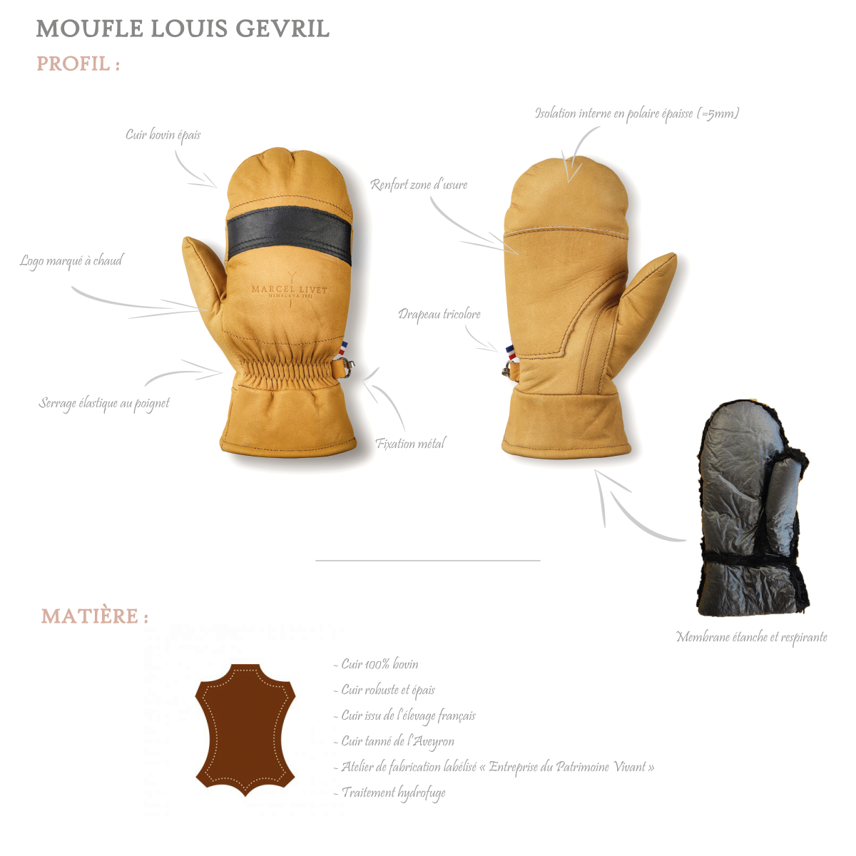 Nous avons développé une moufle fiable, chaude et résistante. Nous avons sélectionné un cuir bovin, rustique, épais et très résistant, associé à une membrane étanche et respirante afin de vous garantir chaleur et confort d’utilisation. Le serrage élastique au poignet permet de s’adapter à tous les skieurs, tout en alliant le look vintage qui nous tenait à cœur.